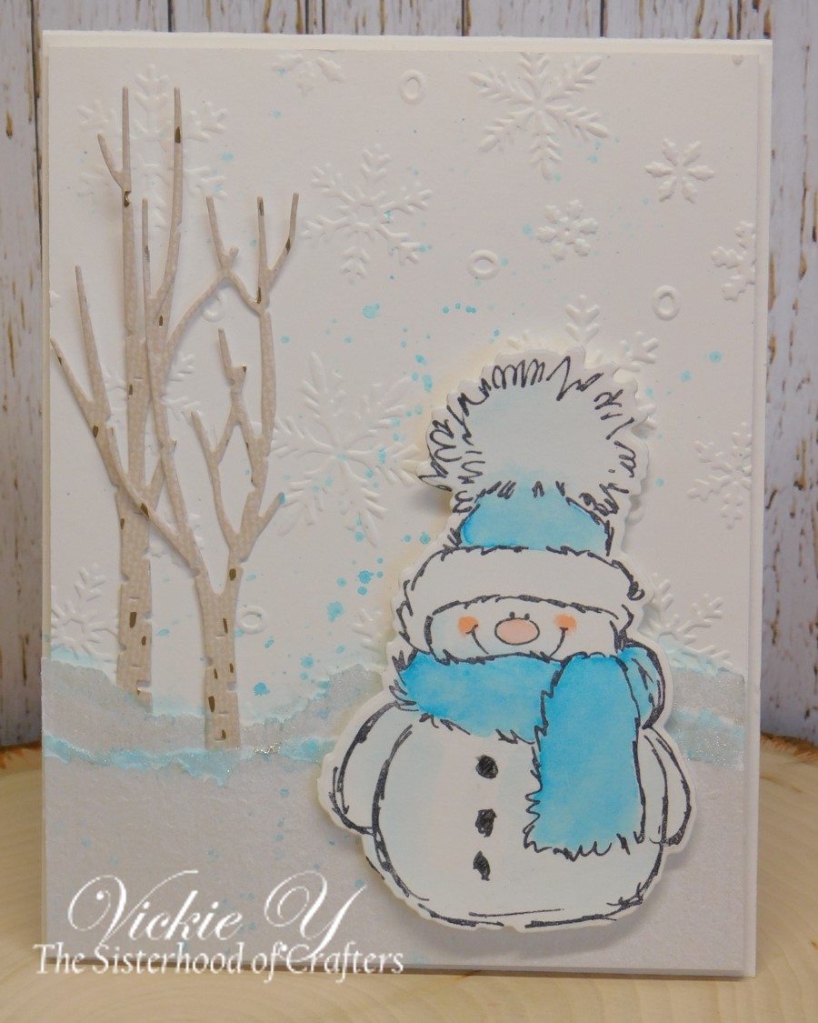 The Sisterhood of Crafters Challenge is a snow theme... use a snowman, or create a snow scene, make sure to use snow on your card/project!